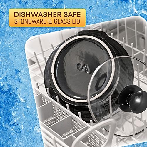 FAST, EASY CLEAN-UP with our dishwasher-safe clear tempered glass lid and removable oval stoneware pot. The stainless steel exterior heating base can be wiped clean with a damp cloth to maintain its pristine appearance.