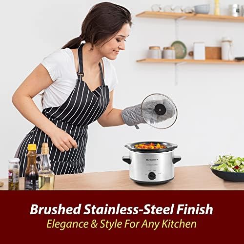 Elite Gourmet MST-250XS Electric Slow Cooker Ceramic Pot, Adjustable Temp, Entrees, Sauces, Stews & Dips, Dishwasher Safe Glass Lid & Crock, 1.5 Quart, Stainless Steel