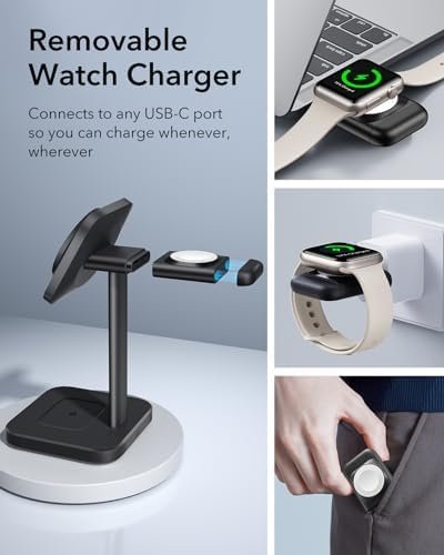 ESR 3-in-1 Charger Stand for Magsafe (HaloLock), Removable Made for Apple Watch